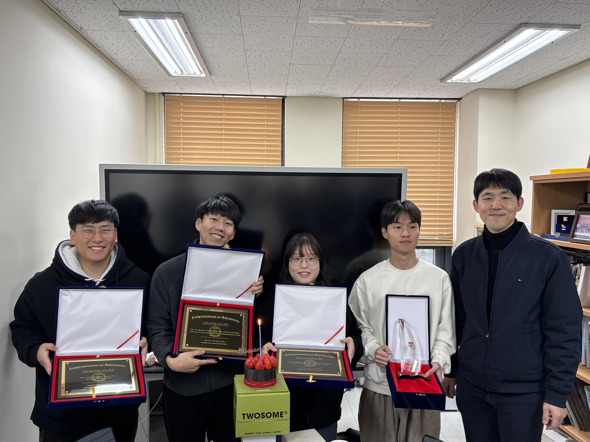 박사 및 석사 학위를 취득한 이형탁, 이윤성, 천혜란, 심규태 학생에게 졸업패를 전달하는 시간을 가졌습니다.