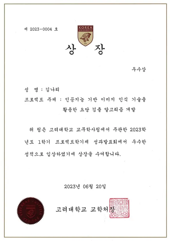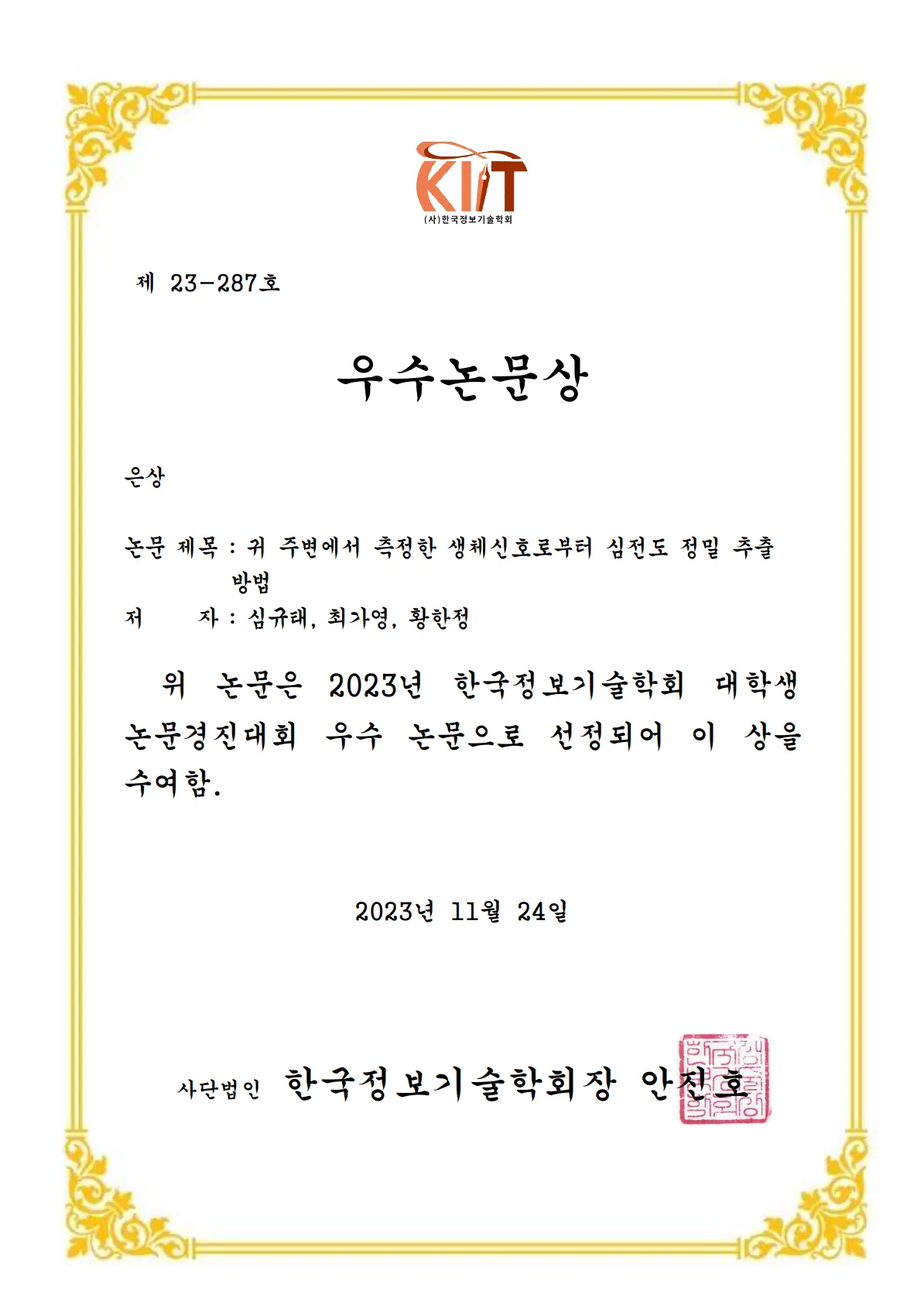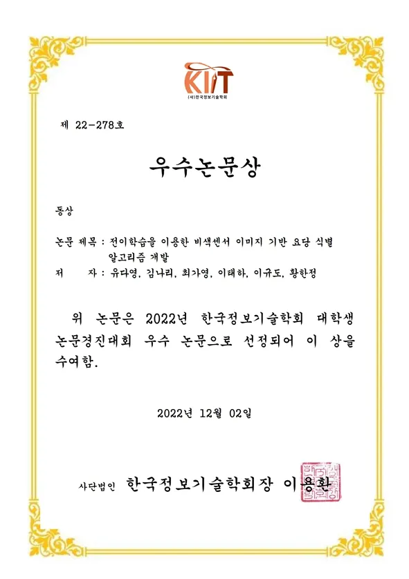 2023 정보기술학회 대학생 논문경진대회 우수논문상