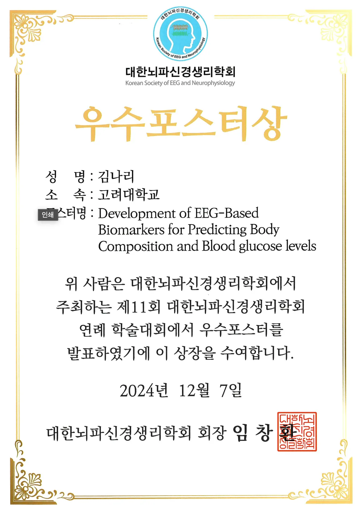 2024 대한뇌파신경생리학회 우수포스터상
