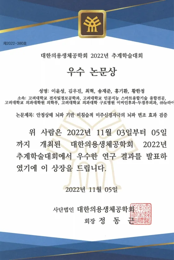 2022 대한의용생체공학회 우수논문상