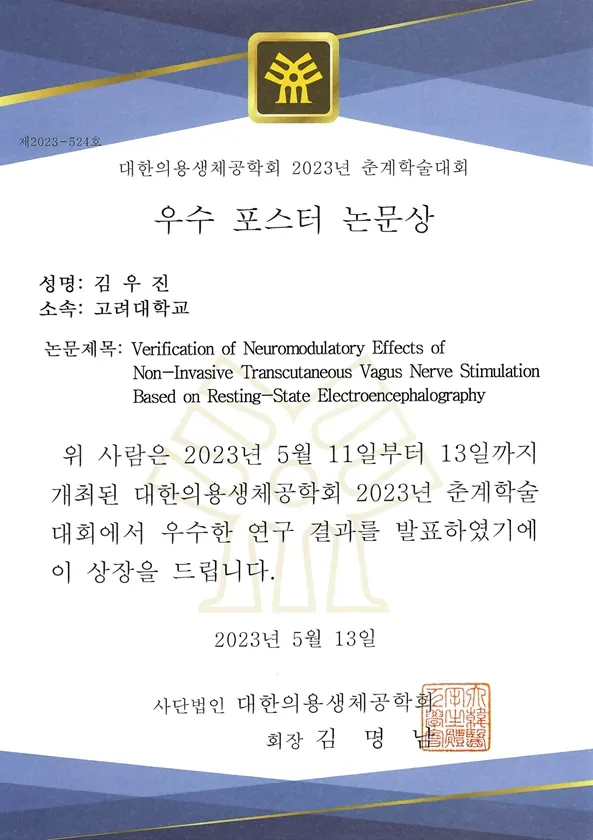 2023 대한의용생체공학회 우수포스터논문상