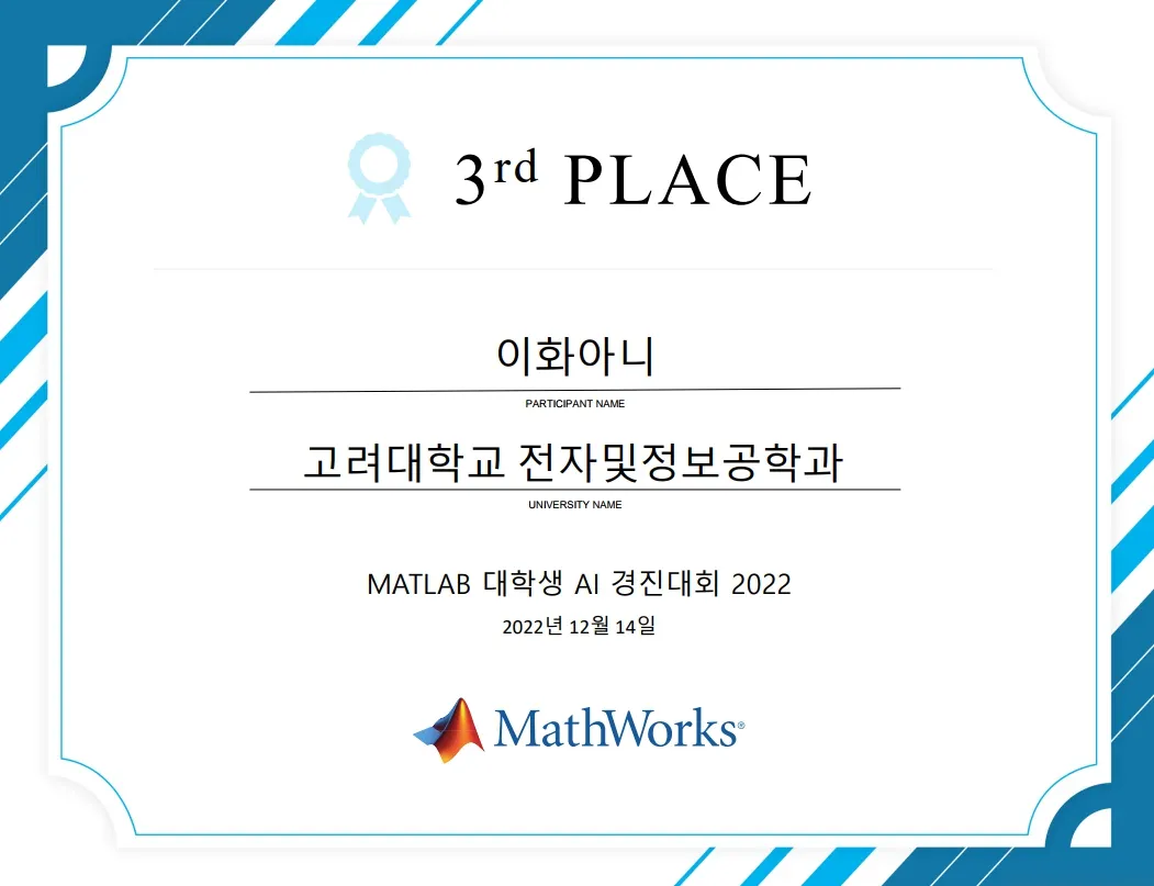 MATLAB 대학생 AI 경진대회 2022 3rd PLACE